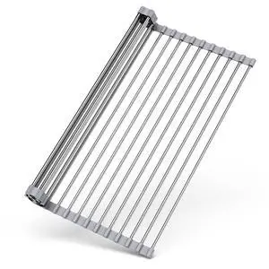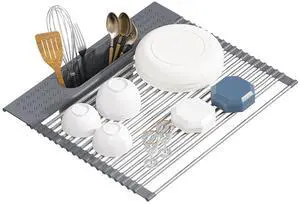 Jumbl Expandable Dish Drying Rack Apple Decor Metal Dish Drainer with Utensil Holder, Adjustable 14"27", Rust-Proof Countertop Dish Strainer for Kitchen Sink, RV, or Outdoor Use