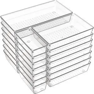 Clear Plastic Drawer Organizers Set of 45 Vanity trays Stackable Storage Bins Dividers Bathroom Organiser Storage Vanity Bins for Makeup, Kitchen Utensils, Jewelries, Office