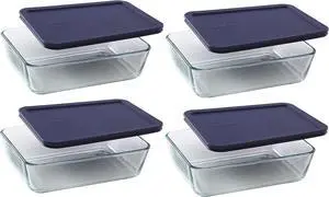 Pyrex 6-cup 7211 Rectangle Glass Food Storage Containers with Blue Plastic Lids - 4 Pack Made in the USA