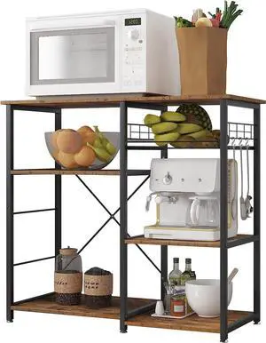 Rustic Brown Kitchen Bakers Rack with Coffee Bar & Microwave Stand Industrial Storage Shelf