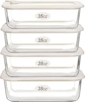 Glass Food Containers with Glass Lid, Microwave Safe Food Storage Container Set, 4 Pack of 35oz, Large Size Airtight Storage Set with Leak Proof Lids, Meal Prep Containers
