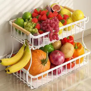 Large 2 Tier Fruit Basket for Basket for Bread Snack Fruit Vegetable White Kitchen Counter Organizer and Storage Bread Holder for Kitchen Counter