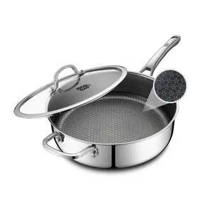 Frying Pans Nonstick with Lid,Hybrid Non Stick 5 Quart Saute pan,PFOA Free Cookware,Stainless Steel skillet,12 inch Deep Saute Pan,Dishwasher&Oven Safe,Works on All Cooktops
