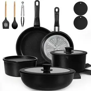 20 Pcs Pots and Pans Set Non Stick, Detachable Handle Cookware Sets Nonstick, Non Toxic Induction RV Kitchen Cooking Set with Removable Handles, Dishwasher/Oven Safe, Easy Clean (Black)