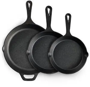 Cast iron Skillets 3 Piece Set, Chefs Pan, Pre Seasoned Cast iron Skillets, 6, 8 & 10 Inches, Easy Use in the Oven, Stove, Grill, or Campfire, Black