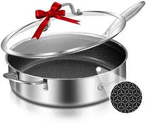 i Stainless Steel Pan with Lid, 6 QT Stainless Steel Saute Pan, 12 Inch Frying Pan, PFOA & PTFE Free, Tri-Ply Skillet, Stainless Steel Pot, Dishwasher & Oven Safe, Works on All Cooktops