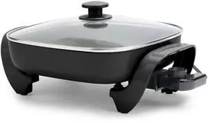 6203# Extra Deep 16"x13"x3.2" (10.5Qt.) Scratch Resistant, Easy Pour Spout Dishwasher Safe, Non-stick Electric Skillet with Glass Vented Lid, Adjustable Temperature, Black