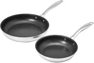 2-Piece Non-Stick Stainless Steel Fry Pan Set, Oven Safe, Induction Compatible, Stay-Cool Handles, 10-Inch and 8-Inch