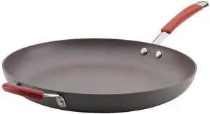 87631-T Cucina Hard Anodized Nonstick Skillet with Helper Handle, 14 Inch Frying Pan, Gray/Red