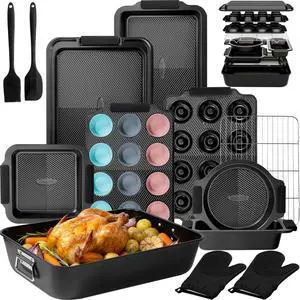 10-Piece Non-Stick Baking Set  Heavy-Duty Carbon Steel Bakeware Set w/ Cookie Sheets, Muffin Pan, Roasting Pan, Cake Pan, Baking Tray, Pizza Pan  Effortless Food Release & Easy Cleanup