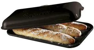 Emile Henry 15" Rectangular Italian Bread Loaf Baker, Dishwasher Safe, Charcoal