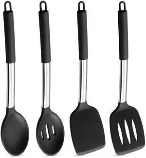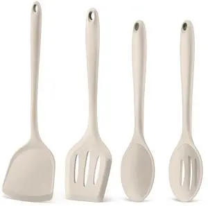 Kitchen Utensil Set, 4 Pieces Non-stick Silicone Cooking Utensils, Heat-resistant Slotted Solid Spoon Turner for Frying, Mixing, Serving, Non-toxic & Easy to Clean, Khaki