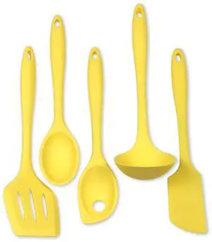 Premium Silicone Kitchen Tool and Utensil Set, 5 Piece, Yellow