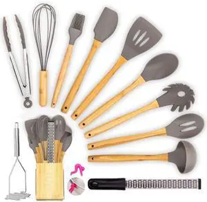 Fresh Fab Finds 11Pc Silicone Cooking Utensil Set w/ Wooden Handles - Gray - One size