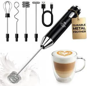 Rechargeable Handheld Milk Frother Wand with 3 Variable Speeds, 3 Whisks and Storage Box, Electric Drink Mixer for Latte, Cappuccino, Hot Chocolate, Eggs and Protein Powder, Black