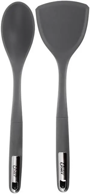 Oster Ridgecrest 2 Piece Silicone Kitchen Tool Serving Spoon and Turner Set in Gray