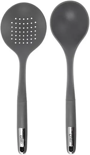 Oster Ridgecrest 2 Piece Silicone Kitchen Tool Skimmer and Ladle Set in Gray