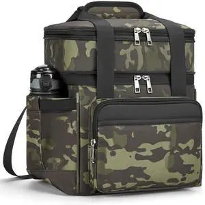 Lunch Bag & Lunch Box for Men Women, Double Deck Leakproof Insulated Soft Large Adult Camping Cooler bag for Work, Beach, Picnic, Travel (Camouflage, 15L)
