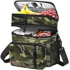 Insulated Lunch Bag & Lunch Box for Men - Double Deck Reusable Lunch Bag for Women Tote Cooler Bag Leakproof Soft Expandable - Large Lunchbox for Work/Adult/Picnic/Outdoor (Camo15L)