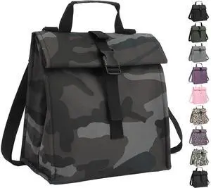 Insulated Lunch Bag for Men/Women,Roll top Reusable Lunch Box with Adjustable Shoulder Strap,Thermal Lunch Cooler Tote Container for Adults Work Office Picnic,Black Camouflage