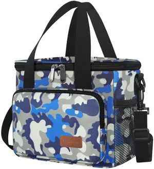 Lunch Bags for Women/Men, Insulated Lunch Bag for Work Office - Lunch Cooler Bag Leakproof Lunch Box with Adjustable Shoulder Strap - Blue Camouflage