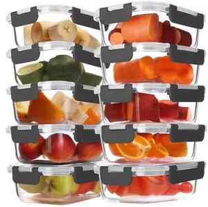 10 Pack 22 oz Glass Meal Prep Containers, Glass Food Storage Containers with Airtight Lids, BPA-Free, Freezer and Microwave Safe