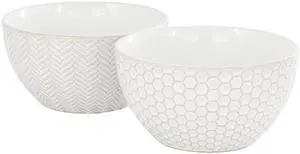 Gibson Elite Earlhart 2 Piece 6 Inch Ribbed Stoneware Cereal Bowl Set in White