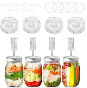 Fermentation Kit for Wide Mouth Mason Jar with 4 Glass Fermentation Weights,4 Fermenting Lids,4 Airlocks,5 Silicone Rings & 5 Silicone Grommet for Sauerkraut and Vegetables (Jar Not Included)