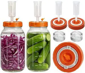 Fermentation Kit for Wide Mouth Mason Fermenting Jar, 2 Glass Weights,2 Lids with Date Marker,2 Airlocks (No Jars) Complete Pickling Sauerkraut Kit