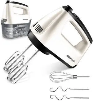 SHARDOR Hand Mixer Electric, 6 Speed & Turbo Mixer Electric Handheld, Snap-On Storage Case,5 Stainless Steel Accessories for Whipping, Mixing Cookies, Brownie, Cakes, Dough Batters, White