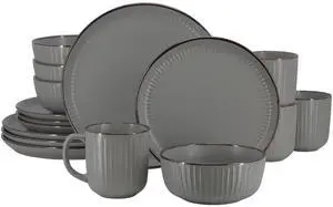 Elama Leo 16 Piece Stoneware Dinnerware Set In Dark Gray