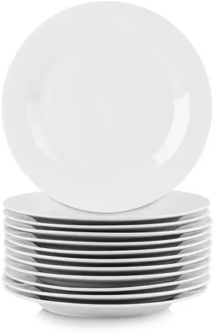 Elama Porcelain 12 Piece Large Round Dinner Plate Set in White