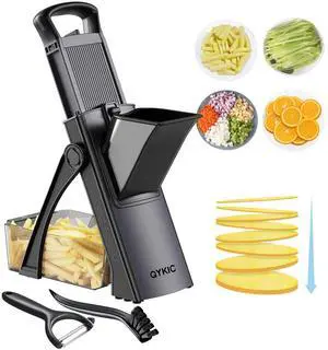Safe Mandoline Food Slicer for Kitchen, Adjustable Vegetable Chopper Food Slicer with Peeler Thickness Adjuster, Potato French Fry Cutter, Kitchen Chopping Artifact (Black)