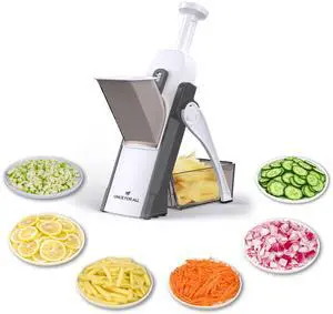 Vegetable Chopper & Mandoline Slicer for Kitchen - Food Chopper with Container, Cheese Grater, Home Essentials & Kitchen Gadgets (8 in 1, White)