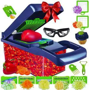 25-in-1 Vegetable Chopper with 13 Blades - Mandoline Slicer -Food Chopper w/Container - Cheese Grater - Veggie Salad Onion Chopper - Kitchen Gadget - Home Essentials - Kitchen Accessories