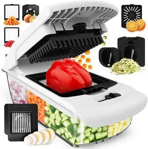 Vegetable Chopper, 16-in-1 Food Slicer, Onion Chopper, Mandoline Vegetable Slicer, Cutter, Spiralizer, 8 Stainless Steel Blades, Includes a Food Storage for Kitchen