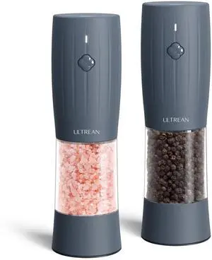 Electric Salt and Pepper Grinder Set Salt Mill, Battery Powered Automatic Pepper Mill, Ceramic Grinder with Adjustable Coarseness, LED Light, Refillable, One Hand Operation (set)