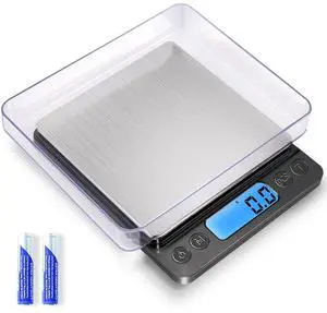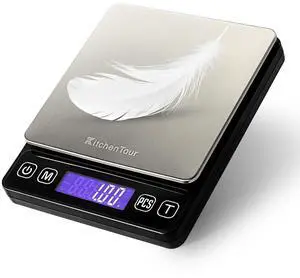 KitchenTour Digital Kitchen Scale - 500g/0.01g High Accuracy Precision Multifunction Food Meat Scale Small Scale Jewelry Lab Carat Powder Scale with Back-Lit LCD Display(Batteries Included)
