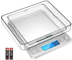 Digital Food Kitchen Scale Upgraded YONCON 3000g/0.1g High Accuracy Mini Pocket Scale Measures in Grams and oz for Cooking Baking Jewelry Tare Function 2 Trays LCD Display (Batteries Included)