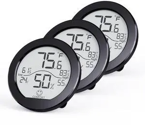 SECRUI Indoor Digital Hygrometer 3 Pack Room Thermometer and Humidity Gauge LCD with Max and Min Records (Black)