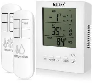 Freezer Temperature Alarm, Briidea Wireless Fridge and Freezer Thermometer with Alarm, Alerts for Max/Min Temperatures (-40 to 99), Prevent Food Spoilage