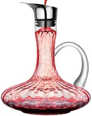NORIMODA Hand Blown Wine Decanter, 60oz Large Red Wine Decanter With Aerator, Lead-free Striped Glass Carafe, Cute Wine Accessories Set With Handle And Lid Filter, Unique Gifts For Wine Lovers