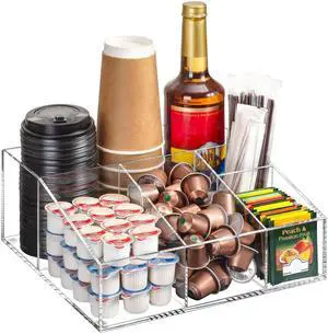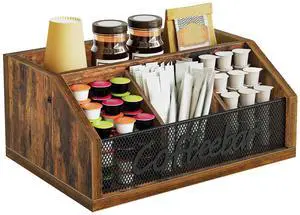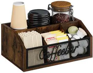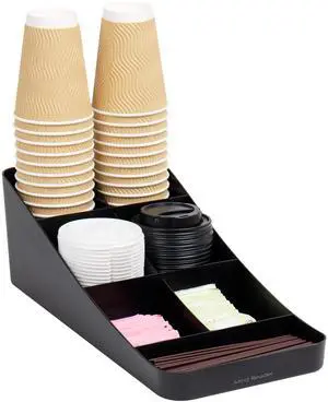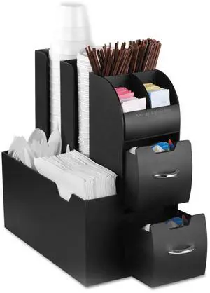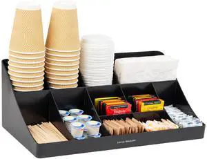 Cup and Condiment Station, Countertop Organizer, Coffee Bar, Kitchen, Stirrers, 7.25"L x 15.5"W x 5.25"H, Black