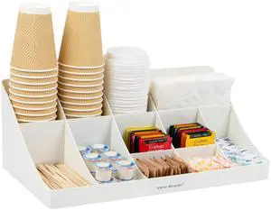 Cup and Condiment Station, Countertop Organizer, Coffee Bar, Kitchen, Stirrers, 17.875"L x 9.5"W x 6.625"H, White