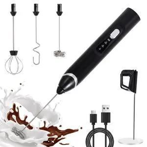 Handheld Milk Frother Wand for CoffeeRechargeable Drink Mixer, 30dB Ultra Quiet with 3 Adjustable Speeds & 3 Whisks For Cappuccino, Hot Chocolate, EggProtein powder