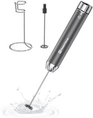 Rechargeable Milk Frother with Stand, Coffee Frother Stirrer Wand, Handheld Drink Mixer with Stainless Steel Whisk, Electric Whisk Foam Maker for Lattes, Cappuccino, Matcha, Protein Powder