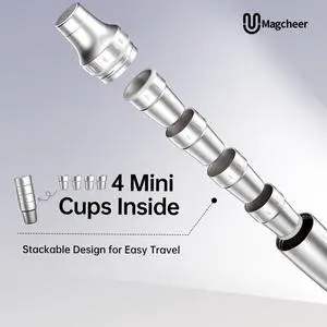 Hybrid Cocktail Shaker Set with Stackable Cups | Vacuum Insulated Stainless Steel Martini Shaker & Bartender Tools | Travel-Ready Kit | 30oz | Silver
