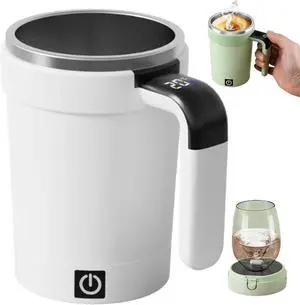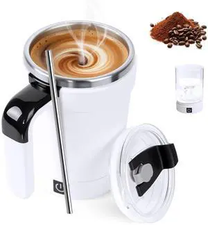 Self Stirring Coffee Mug, Electric Auto Mixing Cup for Coffee & Protein Shakes, Rechargeable, 13 oz White, Perfect for Office & Home Use