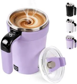 Self Stirring Coffee Mug, 2026 New Automatic Magnetic Stirring Coffee Mug with Temperature Display,Detachable Base Self-Stirring Mug, Smart Mixing Cup for Coffee, Chocolate, Milk, Tea(Black) (Purple)