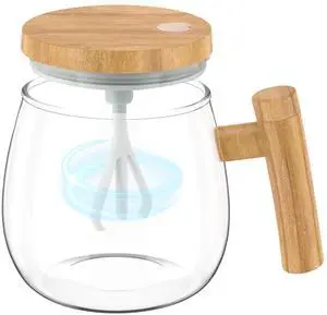 Automatic Stirring Mug, Glass Self Stirring Cup with Detachable Stirring Rod - 13.5oz Electric Mixer Cup for Coffee, Tea & Protein Shakes, Ideal Gift for Home/Office/Travel Use
